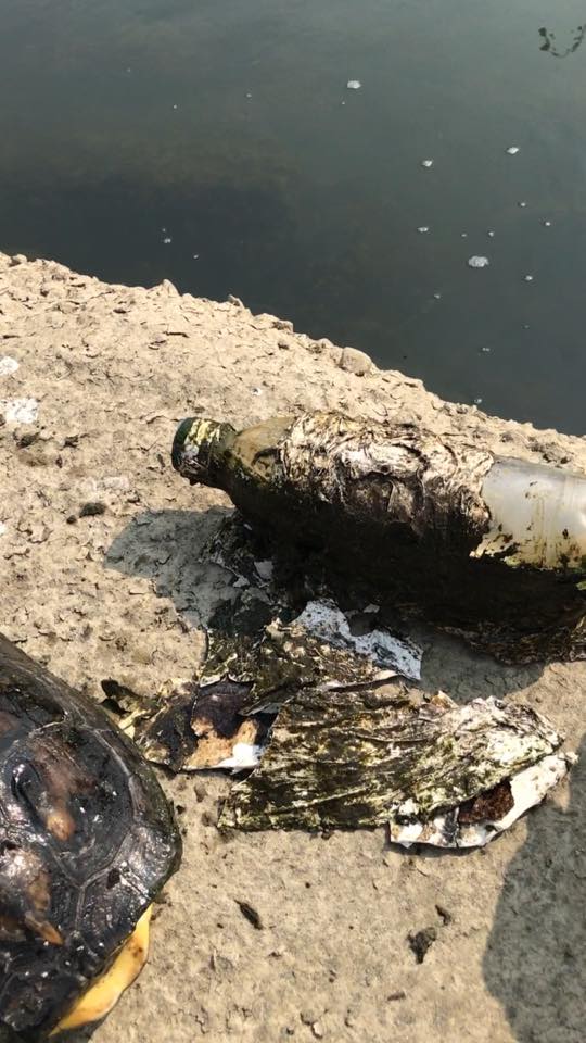 Al parecer, alguien había utilizado pegamento de silicona para pegar la botella a la parte superior de la concha de la tortuga. Kuo se las vio y se las deseó para conseguir separar a ambos, raspando el pegamento cuidadosamente para no dañar al pobre animal.
