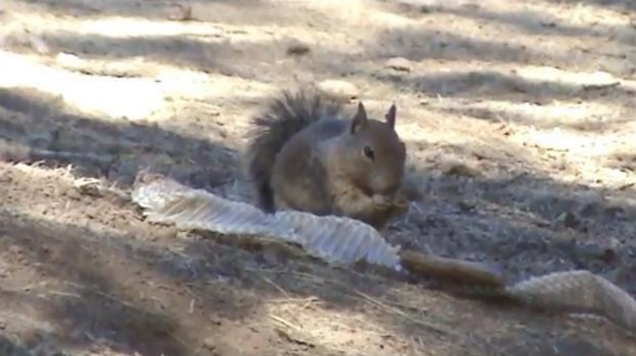 Cuando una ardilla encuentra los restos de una piel de serpiente abandonada tras la muda, comienza a masticarla para después untarse el pelaje con la mezcla. Este proceso, le permite oler como una serpiente cascabel, ahuyentando a sus depredadores potenciales.