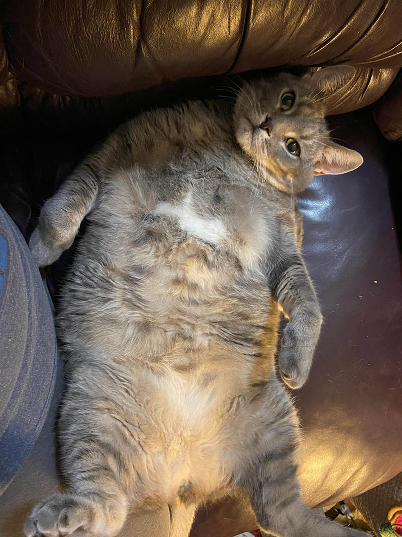 «Nuestro gatito cruzó recientemente la marca de peso de 8 kg».