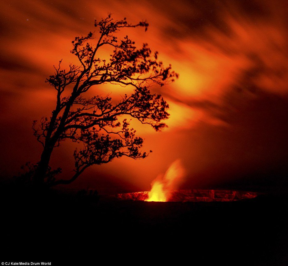 Considerando que la humanidad utiliza el fuego durante millones de años, es muy fácil olvidar que observar un espectáculo de fuego de forma espontánea, es algo relativamente raro en la naturaleza. En Hawai se puede ver al atardecer una columna de vapor sulfuroso en un respiradero del volcán activo Kilauea.