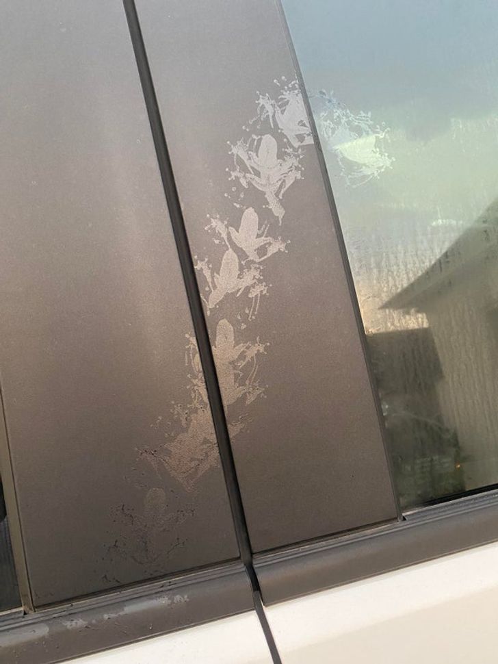«Las huellas que dejó una rana en mi camioneta en la mañana».
