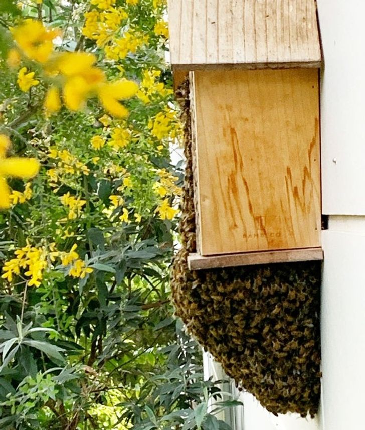 Tenemos un «hotel de abejas» para «abejas solitarias», pero esta mañana llegaron más huéspedes de los esperados.