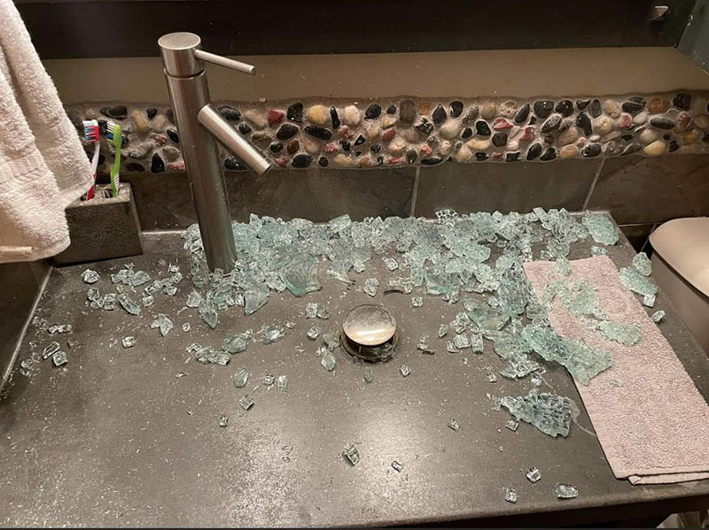 6-. “Tenía un hermoso fregadero de vidrio y había una botella de vidrio que se me cayó encima por la mañana”