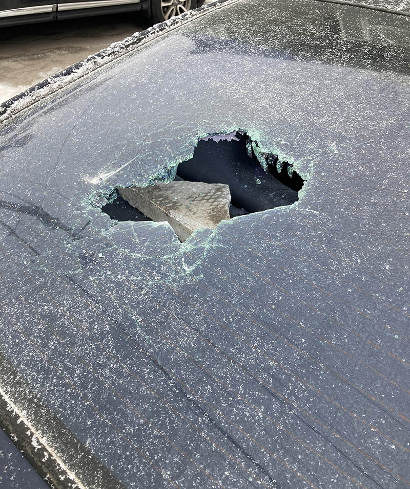 9-. “Alguien le tiró una piedra a la ventana trasera de mi auto, me enteré por la mañana”