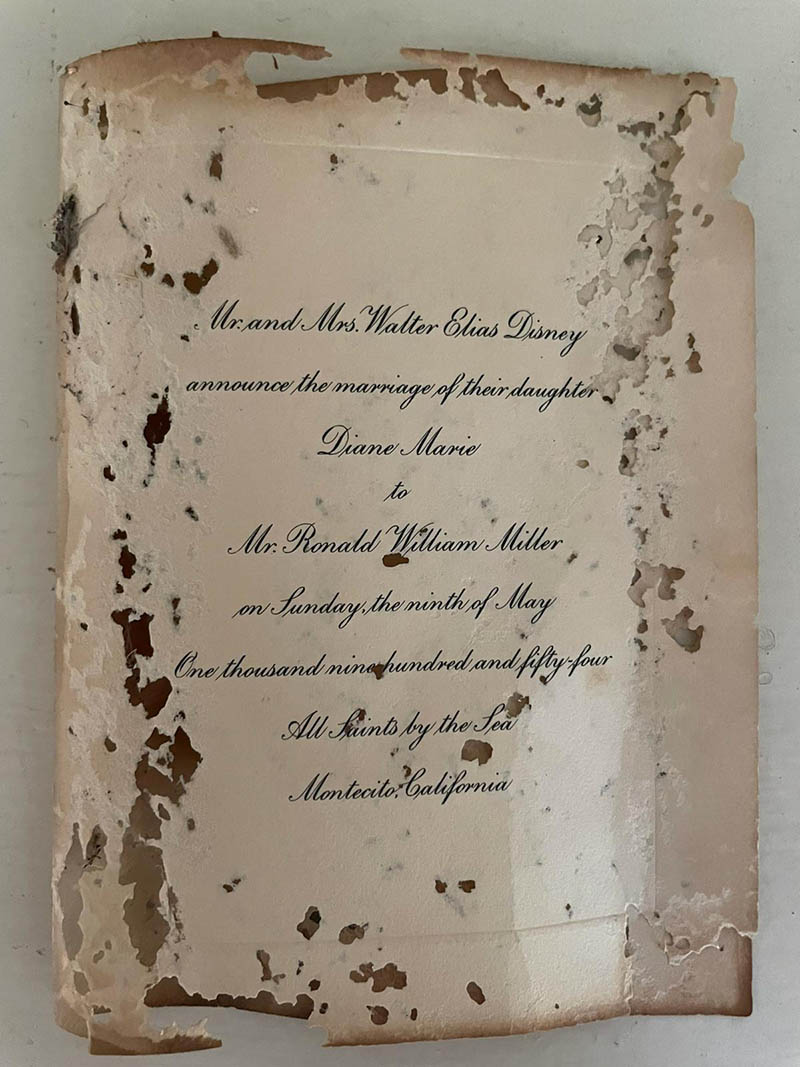 6. El 9 de mayo de 1954, Diana, la hija de Walter Disney se casó. Esta es una invitación de la boda.