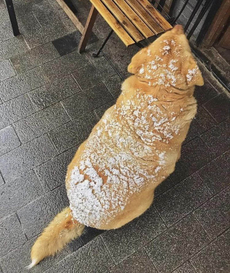 11. El perro estaba empolvado con nieve y se convirtió en un beignet.