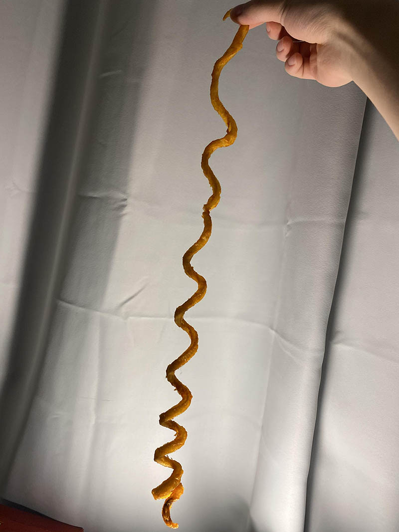 ¡Patatas fritas de longitud increíble! Probablemente la más larga del mundo.