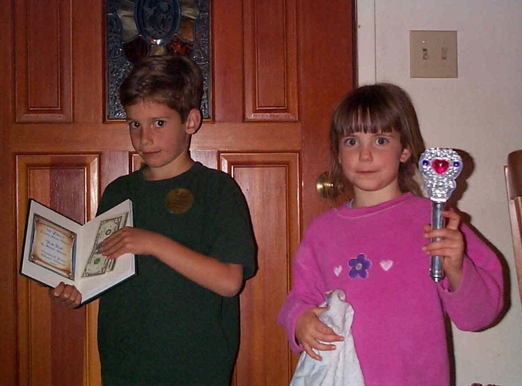 12. «Mi hermano y yo. Él está posando con el premio que ganó en un concurso de poesía y yo estoy con mi cobijita y un cetro»