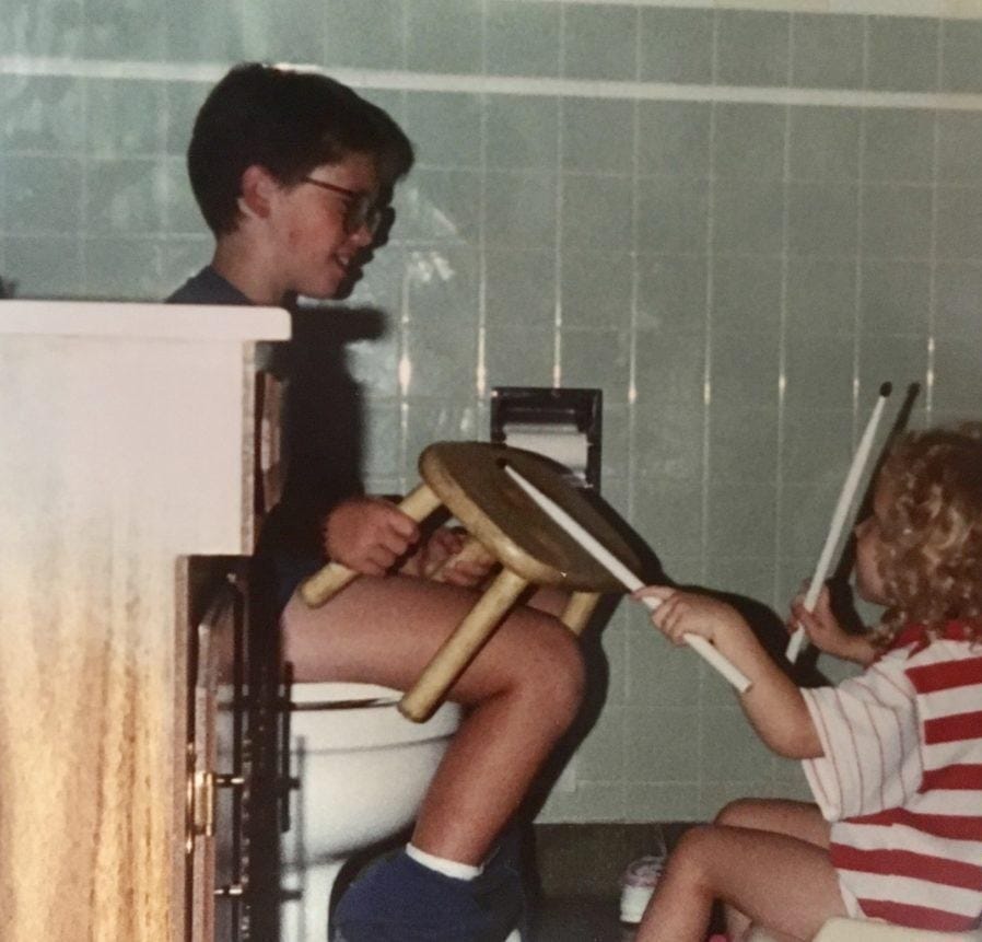 1. «Aquí está mi hermano con su trofeo y medalla de hokey… Y ahí estoy yo, mostrando orgullosamente mi aro de cebolla»