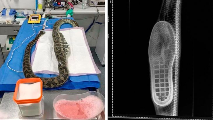 14. Esta pitón se comió un zapato. Necesitó cirugía pero ya está bien