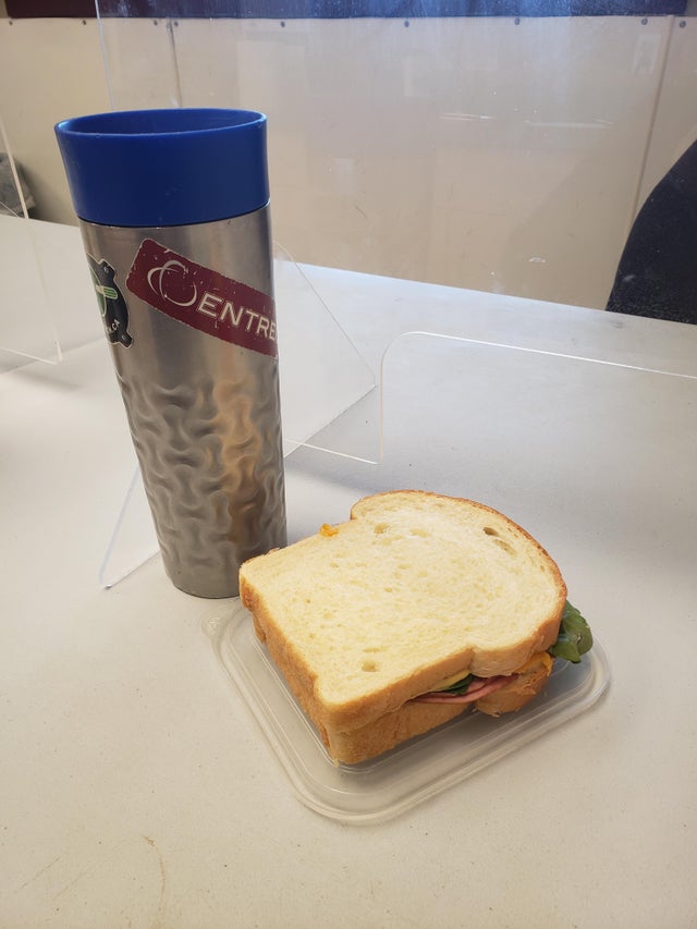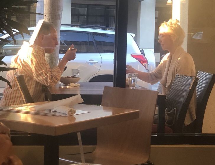 El sol estaba directamente en los ojos de la chica y no podía ver, así que su pareja se puso un menú en el cuello para que la luz ya no la lastimara