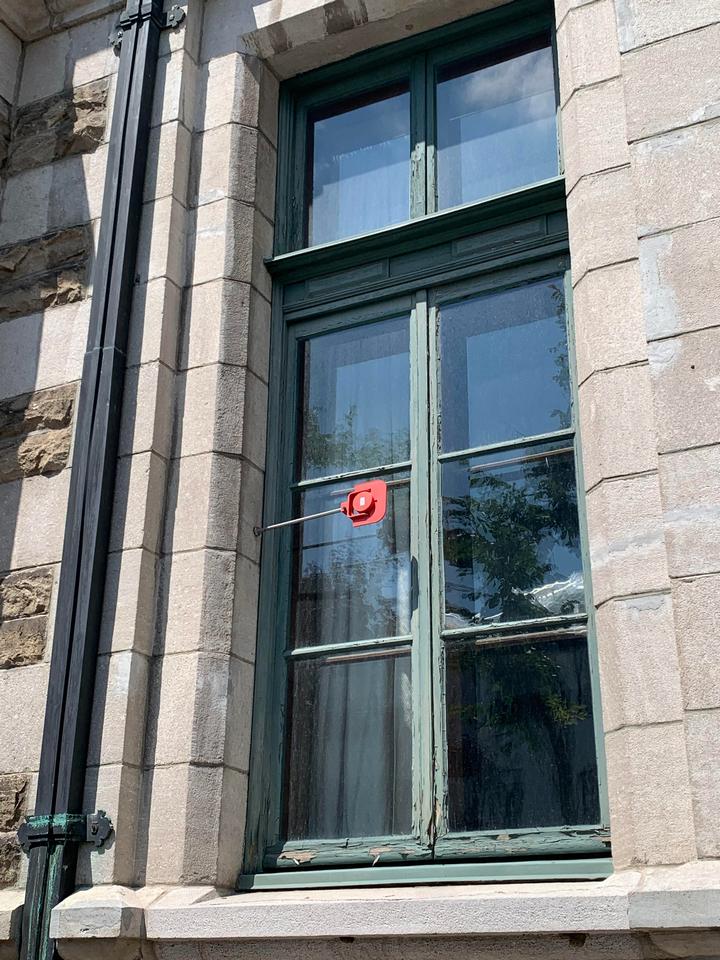 9. Estas palancas rojas se encuentran afuera de las ventanas en Montreal, Canadá
