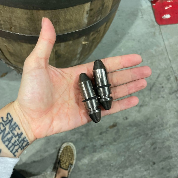 5. Parecen corchos de acero inoxidable con puntas de goma y una liga en medio