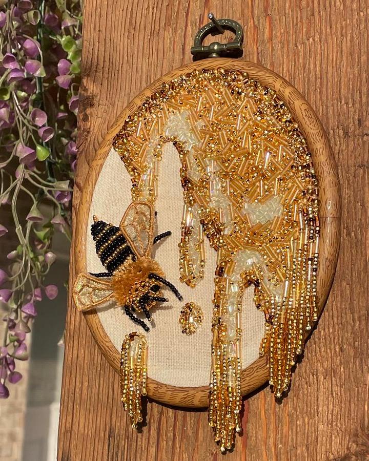 3. «Hice un adorno para la puerta de abejas con solo cuentas de colores».