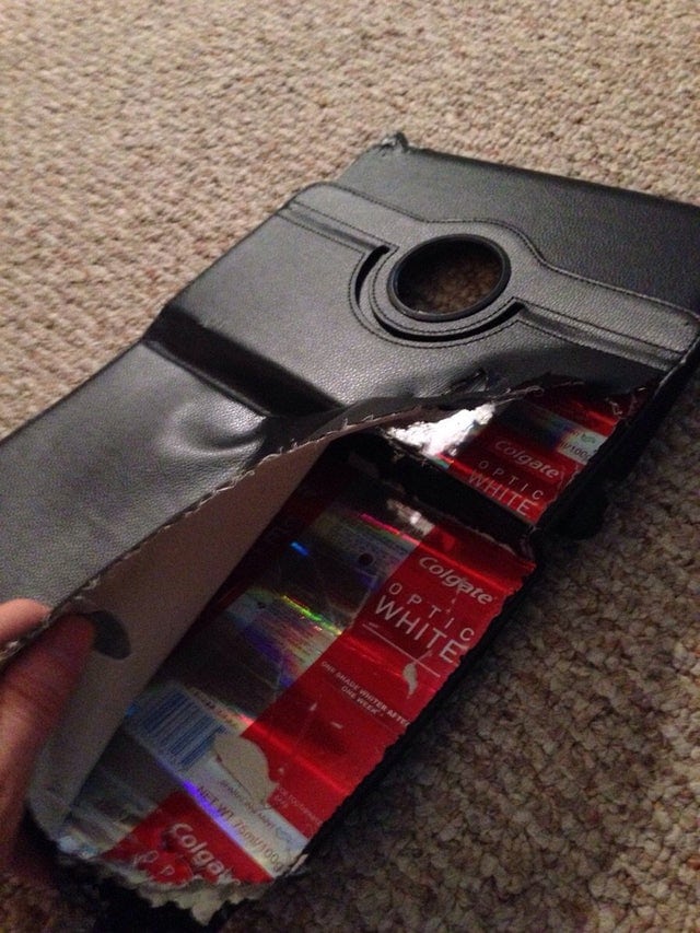 6. «El interior de la funda de mi iPad está hecho de viejas cajas de pasta de dientes.»