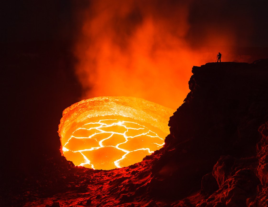3. Lava que ya se ha solidificado, en la boca del volcán