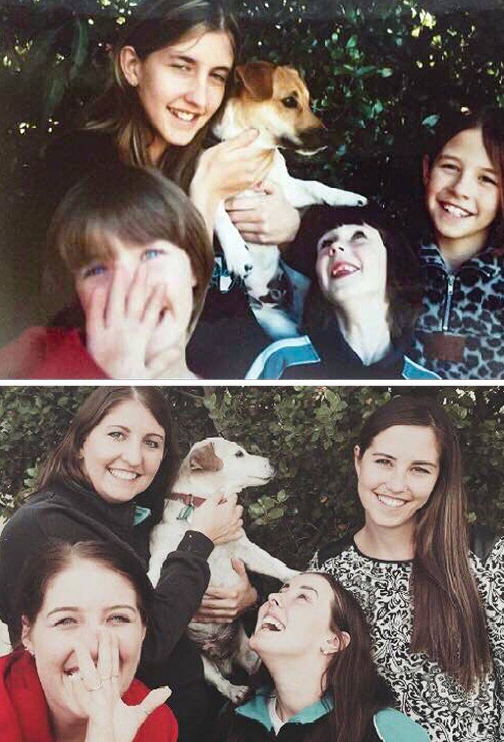 1-. “Ayer nos despedimos de nuestro cachorro después de 16 años, pero antes pudimos recrear esta foto”
