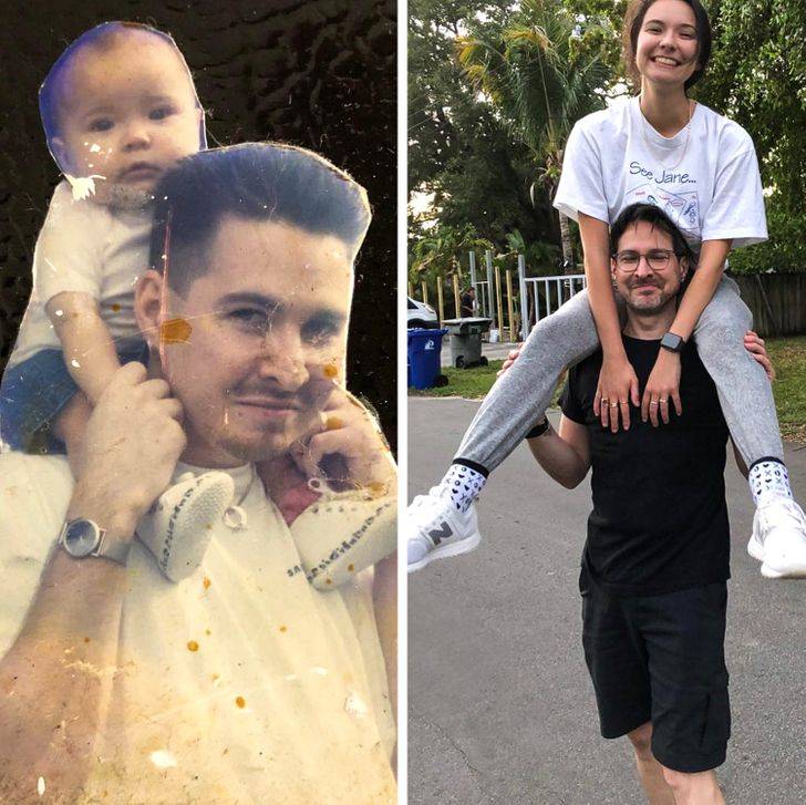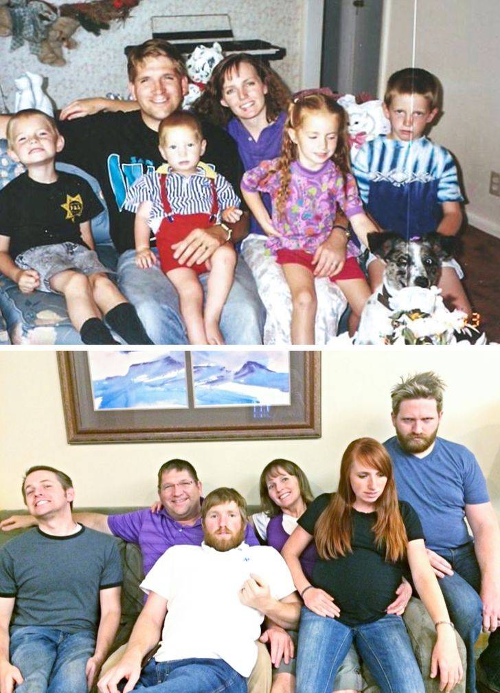 Uno se pone a ver las fotos del álbum familiar y se llena de nostalgia, y hasta nos dan ganas de volver a vivir esos momentos felices. Mucha gente se ha dedicado a recrear sus fotos antiguas, aquellas que representaron un momento significativo para ellos. Aquí te dejamos 17 de las mejores que encontramos.