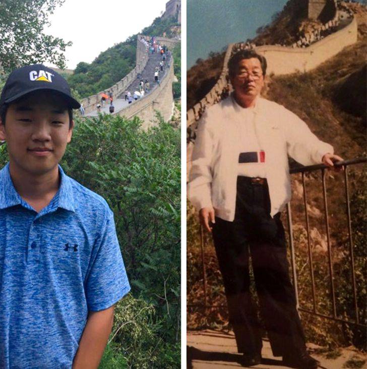 7-. “Mi abuelo y yo en la Gran Muralla China, con 40 años de diferencia entre las fotos”