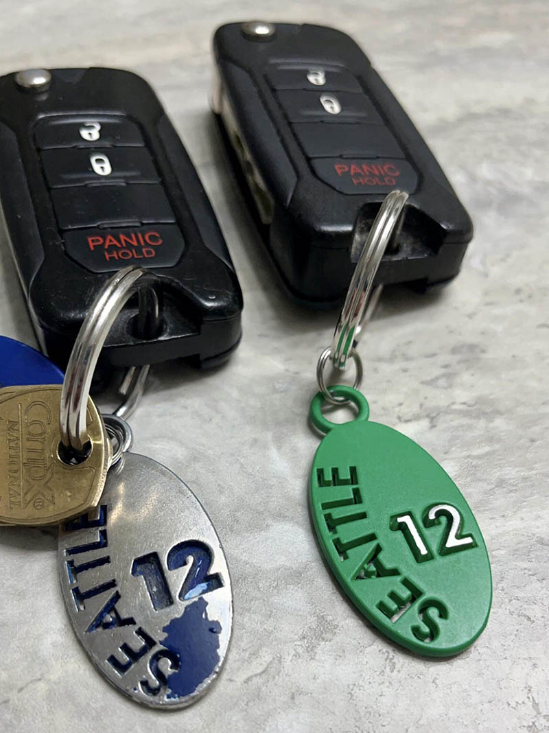 10-. Unos llaveros exactamente iguales, solo que uno es el de la llave principal y el otro es de la llave de repuesto.
