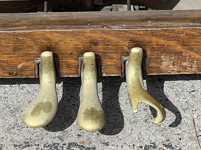 17-. El desgaste de los pedales de este viejo piano es impresionante. ¿Cuántas melodías se tocaron en él?