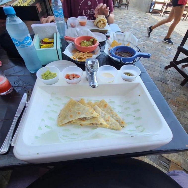 15. Los platos de este restaurante lucen caros, sobre todo porque están servidos en un lavamanos.