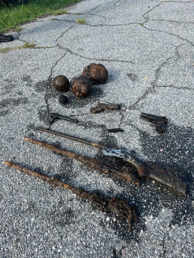 10-. “Tuvimos un muy buen día en la pesca magnética: Encontramos 5 arm4s  y 3 balas de la Guerra Civil”.