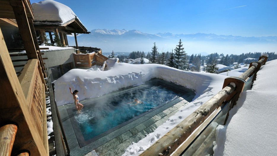 Este pequeño y lujoso hotel, está situado en la ladera de una montaña por encima de la montaña Crans.