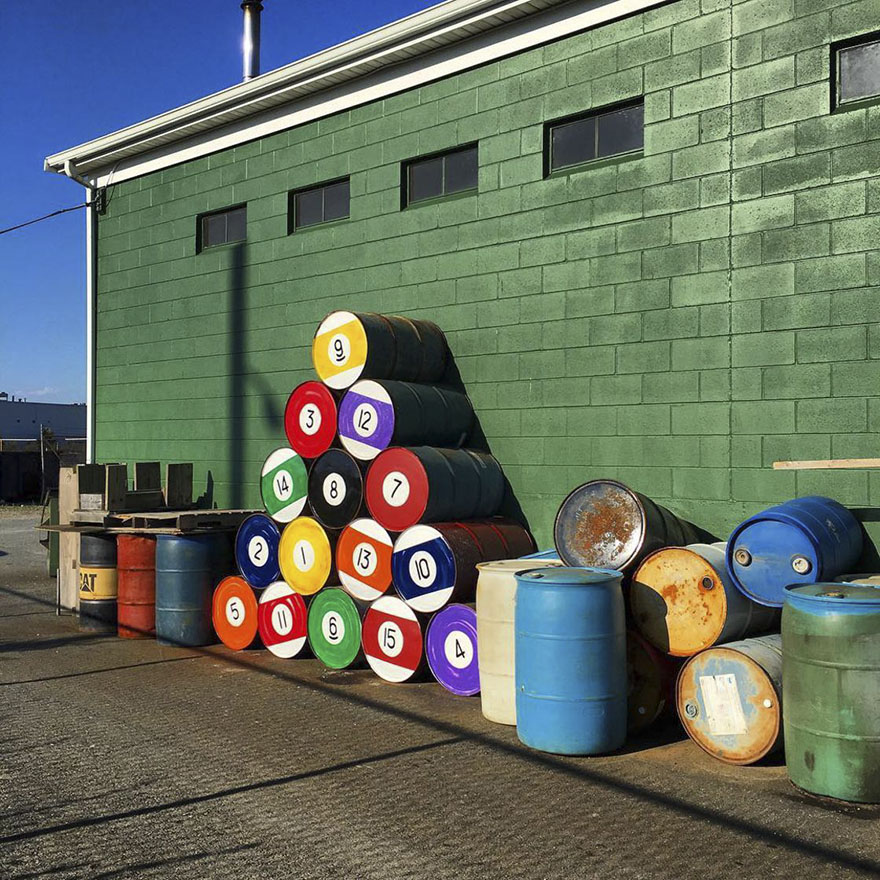 Tom Bob utiliza el mobiliario público a su favor para realizar sus caprichosas piezas de arte, inspiradas en la cultura pop de los años 60 y 80. No te lo pierdas