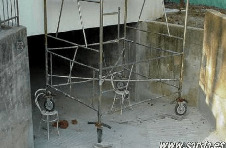 23. Equilibrismo sobre andamio.