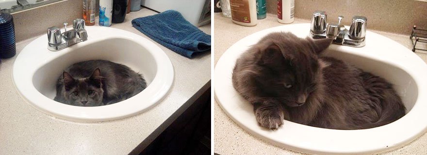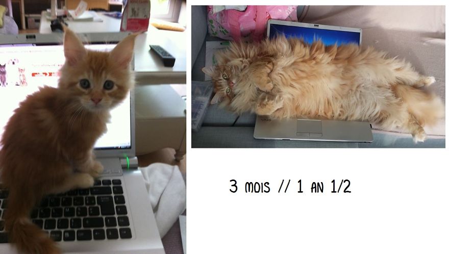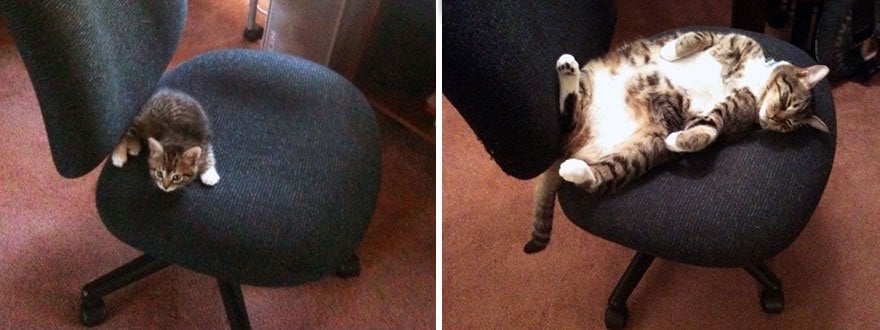 Hoy os traemos 25 fotografías de gatos cuando eran cachorros y en la actualidad. En ellas vemos cómo un felino nunca madura completamente y, aunque su tamaño cambie, su personalidad, sus manías y sus gustos permanecen invariables.