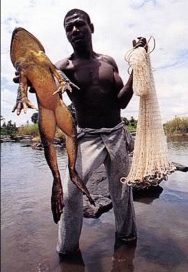 La rana goliath habita en las zonas pantanosas de Camerún y Guinea Ecuatorial. Es el anuro más grande del mundo, pudiendo llegar a medir en extensión entre 76 y 80 centímetros de largo y pesar más de 3 kilogramos de peso. Además gracias a sus portentosas ancas de rana puede saltar distancias de hasta 3 metros.