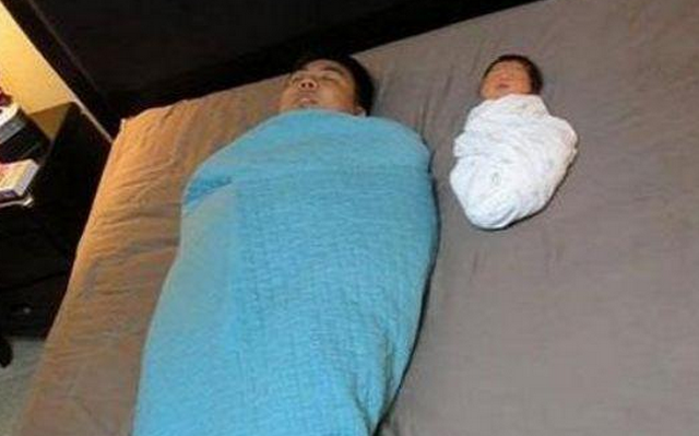 2. Padre e hijo experimentando qué se siente al ser una momia