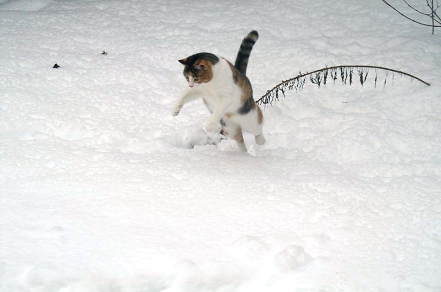 Aunque los gatos no son muy amigos del agua, con la nieve parecen disfrutar mucho