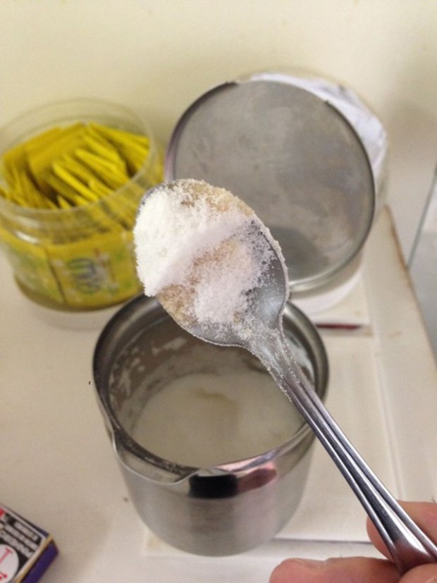 Meter la cucharilla en el azucarero. Procura evitarlo metiendo una cucharilla seca