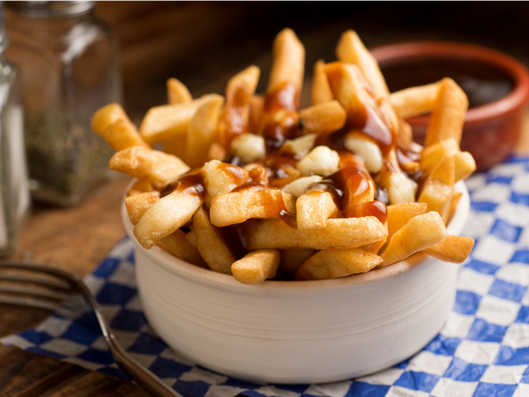 3- Este plato se llama Poutine y es el plato nacional de Canadá. Consiste en patatas fritas con salsa de carne y trozos de queso. En el restaurante La Banquise de Montreal dicen que les sale muy rico.