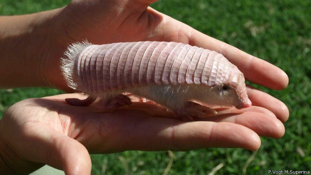 Es el armadillo más pequeño del mundo, su cuerpo es rosa y tiene pelaje blanco en su vientre, además usa su cola como una quinta pata. Vive en los desiertos de Argentina y pasa la mayor parte del tiempo enterrado. Se alimenta de plantas y animales invertebrados. Tiene la capacidad de almacenar sangre en su caparazón para regular su temperatura en épocas calurosas.