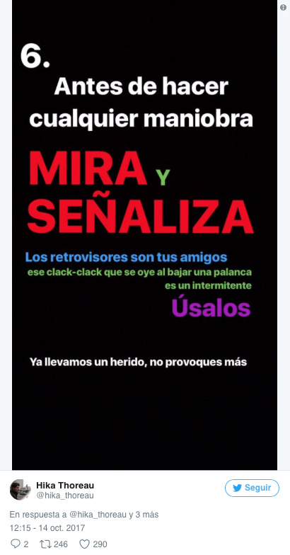 «Antes de hacer cualquier maniobra: mira y señaliza»