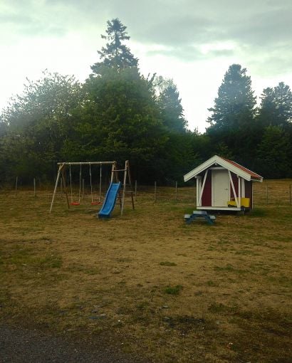En la casa de visitas de Bastoy hay un patio de juegos para que los hijos de los residentes jueguen junto con sus padres.