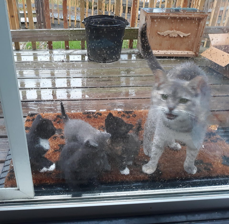 Esta gatita llamó a la puerta en plena tormenta con sus 4 tiernas y adorables responsabilidades
