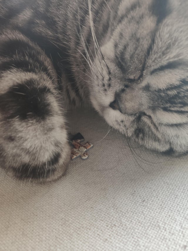 «Mi gato está profundamente dormido con la última pieza del puzzle, que estuvimos buscando durante 10 minutos»