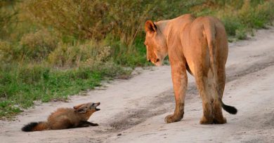 Una leona se encuentra con un zorro herido y lo defiende del resto hasta que logra escapar Actualidad