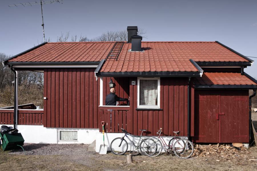 En la casa de visitas de Bastoy hay un patio de juegos para que los hijos de los residentes jueguen junto con sus padres.