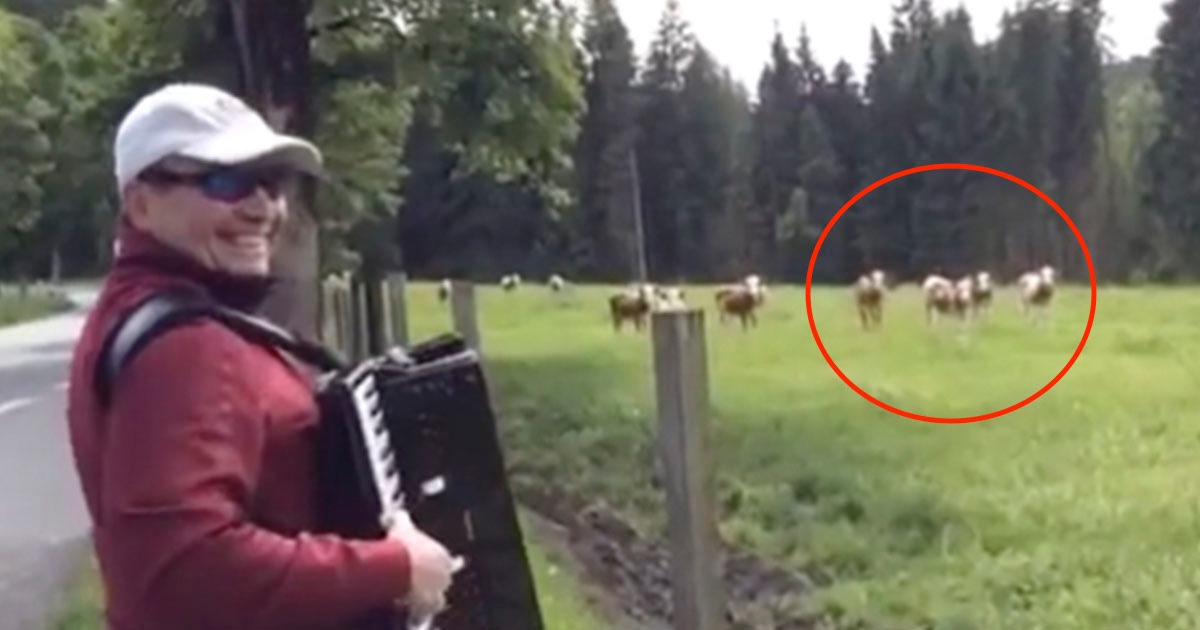 Dicen que la música amansa a las fieras, lo que no sabíamos es que el instrumento preferido por las vacas es la acordeón. Al menos eso es lo que podemos deducir del siguiente video.