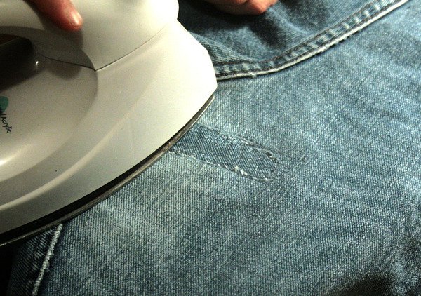 Ahora pasamos la plancha hasta asegurarnos que la entretela termofusible hace bien su trabajo y se queda adherida la pieza del remiendo