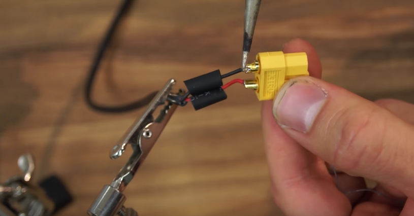 Soldamos los cables del adaptador al conector, del mismo modo que hicimos con el ventilador