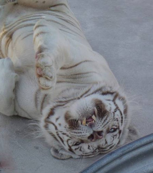 Kenny, que así se llamaba este singular ejemplar de tigre blanco nació en cautividad en el «refugio» para animales de Eureka Springs, Arkansas, EE.UU, como parte de un experimento.