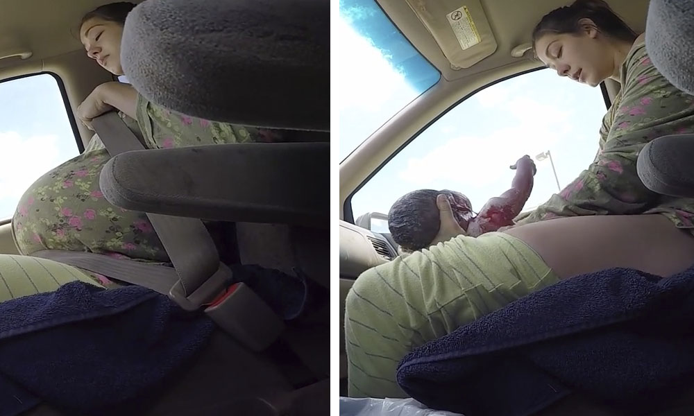 Da a luz en un coche de camino al hospital y su pareja lo graba todo