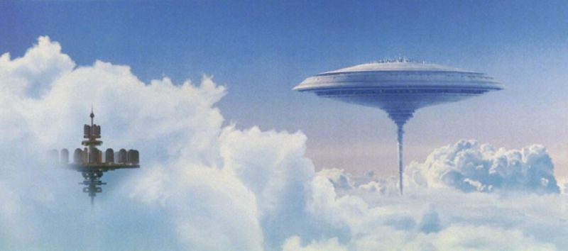 La escena en la que Han Solo aterriza en La ciudad de las nubes en el planeta Bespin fue rodad gracias a esta pintura. Seguro que no te habías parado a pensar qué tipo de efectos especiales habían utilizado.