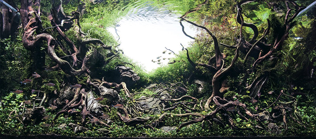 El aquascaping es considerado un arte por todos aquellos aficionados al mundo de los acuarios, y no es para menos. Algunas de las creaciones de estos amantes de los acuarios son auténticas maravillas. Esta disciplina tiene incluso un concurso anual llamado IAPLC -las siglas en inglés de Concurso de Diseño Internacional de Plantas Acuáticas-. El artista, fotógrafo y diseñador japonés Takashi Amano fue uno de los grandes impulsores de este evento.